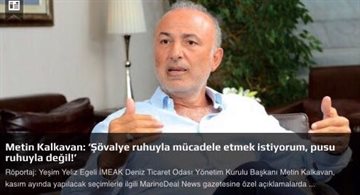 Deniz Ticaret Odası Yönetim Kurulu Başkanı Metin Kalkavan Kasım ayında yapılacak olan seçimlerle ile ilgili MarineDeal News gazetesine özel açıklamalarda bulundu.
