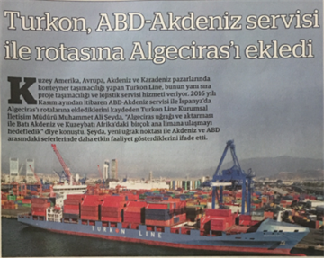 Turkon, ABD-Akdeniz servisi ile rotasına Algeciras’ı ekledi.